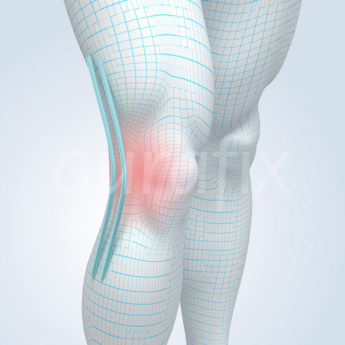 Hava alabilen, esnek terletmeyen örgü kumaştan anatomik diz şekline uygun üretilmiştir.Her iki yanda ikişer adet esnek spiral balenden ligament desteği mevcuttur.